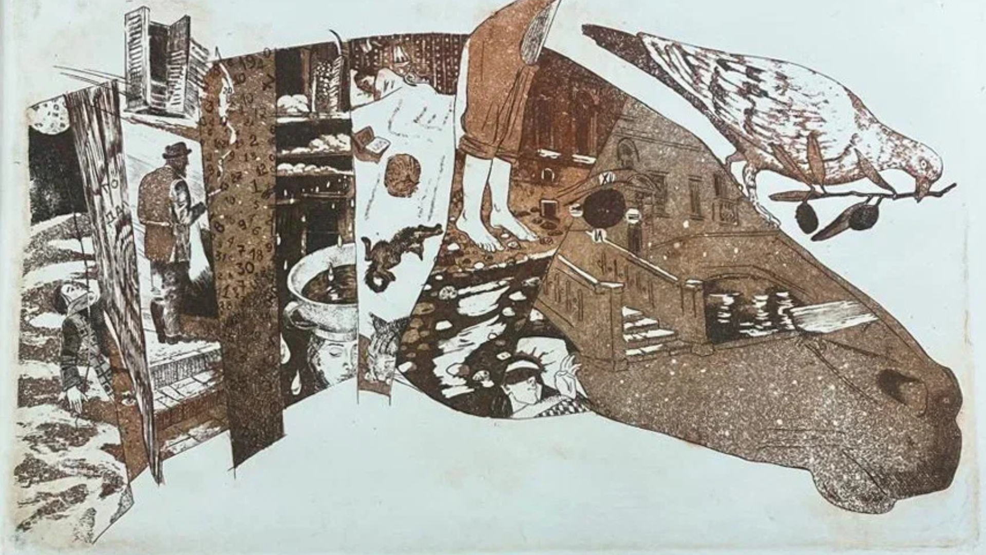 Офорт: рисунок иглой на металле, протравленный кислотой, затем — оттиск на бумаге под огромным давлением станка.